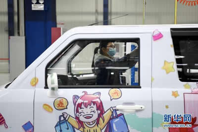 工人在总装车间组装新能源快递车。 当日,由山东豪驰智能汽车有限公司投资、中