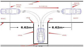 为了能更好地观察左后视镜中库底的情况,建议在倒车前先将左侧的后视镜调到最高,这样才能更及时地看到左边库底线的出现。其实最大的诀窍就是车速一定要放慢,最好时刻带点刹车,然后保持心态平稳(心态平稳非常重要,这个根据各人的性格因人而异,如果你属于紧张型,建议做些内观、瑜伽之类的修练,效果很好,本人练过一种内观,叫中国内观禅,在考试前,做下这方面的练习,考试时心态非常平稳)!●考前必读“五必考”虽然是一气呵成,但考试中前一考试与下一考试之间的路段,理论上不做评判。考生需要注意,每项考试均是以车辆通过起点虚线,电脑报告考试开始为准;结束则是以通过终点虚线,播报考试成绩为准(中途有不合格失误当即结束)。在上一考试终点虚线和下一考试起点虚线之间的路段,中途停车或压线等失误,不会计入成绩。考生上车后不要急于起步,应先系好安全带,调整座椅和后视镜角度,直到与自己在驾校练习时的教练车相同为止。在倒车入库考试前,还有调试机会,这时应将后视镜角度向下方调试,直到看到车尾及后车轮上方叶子板为止。●五必考流程1、在同一天同一批赴考的不同驾校的考生,被随即安排到同一辆考试车上乘坐。2、引车员将车驾驶至考道前指定位置,第一名考生坐驾驶座,准备考试。3、按照“坡道定点停车和起步”(以下简称‘坡起’)、侧方停车、曲线行驶、直角转弯、倒车入库的顺序进行考试。若考生在今年之前参加并通过了旧规“电子桩”考试,可不必参加倒车入库考试。4、同一名考生在考试过程中有一次导致不合格的失误,或累计三次扣10分失误(80分合格),需当场停车下车,再由引车员将车重新开回考道初始位置,下一名考生开考。一、坡起:难度系数:★★★★☆科目二考试标准与评分标准●场地介绍:起点位于上坡前,坡长约20米,坡度只有10%。上坡中央处有三条横线,前后为虚线,中央为实线。考生需要将车前保险杠停于实线处。再起步上坡直行。●分值:前保险杠位于虚线以内、实线以外,扣10分前保险杠位于虚线以外,不合格再次起步时后溜小于30CM,扣10分,大于30CM,不合格●诀窍:1、以车头中线为标记,尽量调整车辆与两侧车道线平行。2、以前挡风玻璃右下角、半坡实线右侧的标记杆为两大标记点。3、行驶至半坡时,透过前挡风玻璃望去,当标记杆与前挡风玻璃右下角距离为25至30厘米时刹车,然后拉手刹。身高越高的人,这个距离应越短,最短不超过25厘米。4、半坡起步时,踩离合器挂1挡。缓慢抬起离合器,过快抬起车辆易熄火。感觉车子的抖动幅度为最大时,保持离合器幅度不动,松开手刹,车辆起步。抖动幅度需多加练习,抖动不足容易后溜。二、侧方停车:难度系数:★★★☆☆科目二考试标准与评分标准●场地介绍:起点位于坡起下坡后,车道扩展为两条,右侧虚线区域为车位。考生需将车前行至停止线后,向右后方倒车进入车位,至与车道线平行且不超过底线停车,再向左前方驶出车位。●分值:车辆入库停止后,车身出线的不合格,中途停车的不合格,行驶中轮胎压线的扣10分●诀窍:1、进入指定位置后倒车,观察左后视镜外侧,至车位前线被后视镜刚好盖住时向右旋转方向盘一圈,继续倒车。2、观察左后视镜,出现车位右后角,向左回一圈方向盘,继续倒车。3、观察左后视镜,左后轮距离车位左边线时(20至30厘米),向左旋转一半圈方向盘,继续倒车。4、观察左后视镜外侧,至车位左边线与车身垂直时,刹车。(不用回方向)5、挂一挡驾离车位,观察车头左前角与车道左边线从合时向右回一圈半方向盘,继续前行至车头中心点与车道左边线从合时向右旋转一圈方向盘,直至车辆与车道垂直向左回正方向盘。三、曲线行驶:难度系数:★★☆☆☆科目二考试标准与评分标准●场地介绍:起点位于侧方停车终点前,为一条“S”形车道,车道宽3.5米,宽度全程无变化。考生需始终保持在车道内行驶。●分值:行驶中车轮压线的,不合格中途停车的,不合格●诀窍:尽量保持车辆与车道线平行,均速行驶,及时修正方向即可。(细节不作一一介绍)四、直角转弯:难度系数:★☆☆☆☆科目二考试标准与评分标准●场地介绍:起点紧接曲线行驶终点,起初为一条直线车道,但会突然向左90度直角转弯。车道宽为轴距(车辆两车轮中央点之间的距离)加1米。考生仍需始终保持在车道内行驶。●分值:行驶中车轮压线的,不合格中途停车的,不合格。●诀窍:1、保持车辆直线前行至拐弯处(偏右行驶),观察左后视镜,后视镜与拐弯后车道的左车道线重合时,向左旋转方向盘一圈半,均速拐弯。2、观察车头,大致与车道平行时迅速回正方向盘,及时修正方向。五、倒车入库:难度系数:★★★★★科目二考试标准与评分标准●场地介绍:以***车管所考场为例,直角转弯结束后,考生需驾车通过一个下坡,右转至倒车入库考场。倒车入库为“T”字形。●分值不按规定路线、顺序行驶的,不合格车身出线的,不合格倒库不入的,不合格中途停车的,不合格●诀窍:1、开始倒车时即向右旋转一圈半方向盘,观察右后视镜中的车轮上方,应与车库右线距离在40厘米左右位置,可保证倒车入库时右侧不会压线。2、观察左后视镜,当能看到车库左线时,马上向左回半圈方向盘,继续倒车。3、观察左右后视镜,两侧均出现车库实线,而相隔距离差不多时,马上向左打回一圈方向盘,继续倒