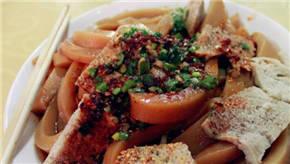 2、酿皮子是西北地区人民最喜爱的风味小吃之一。虽然它习惯上被称为“陕西小吃”,但西宁的酿皮却以其独到的制作工艺和风味,得到无数好评。酿皮子是一种独特的面食,既可作为主食,也可作为零食,清凉可口,开胃解暑。酿皮可以说是街头随处可见的小吃,夏天吃尤其开胃可口,多5元/碗。