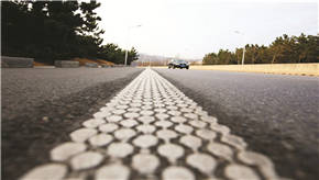 “新型疏水型雨夜标线不是涂敷在路面形成的平面标线,而是由不连续的点状、块状突起等构成的标线涂膜。”项目工作人员任广军说,新型疏水型雨夜标线在雨夜不会有阻水效果,而是充分导流雨水,始终有部分标线突出水面,形成反光点,从而保证标线在雨夜的反光效果。传统的震荡标线,因震荡效果比较剧烈,易造成急刹车。而新型疏水型雨夜标线排列紧密,高度较低,车轮压线时效果较为柔和,在起到震荡效果的同时,使行车更安全。此外,新型疏水型雨夜标线还有全方位反光、整齐美观等优点。