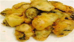 炸蛎黄的做法简单,是青岛饭店菜谱里的常见菜。炸蛎黄口味属于咸鲜,做法属炸类,菜品色泽金黄,外焦里嫩,营养丰富,健脾开胃,对预防骨质疏松非常有好处。牡蛎富含蛋白质以及锌、碘、铁、钙、磷等多种人体必需的微量元素,益气养血,细肤润颜。七八月份选取肉肥色青的牡蛎炸食,实在是当地一大美味。该菜品的特点是:蛎黄因挂了糊而保留了原有的鲜味,鲜嫩多汁,油而不腻,香酥可口。