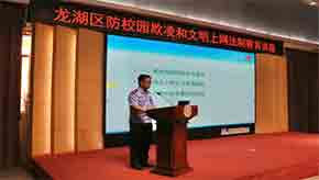 讲座由网警支队一大队大队长王俊宏主讲。网警支队主要领导、龙湖区教育局主要领导参加了讲座,全区各中、小学校全体师生约10万人收听收看了讲座。