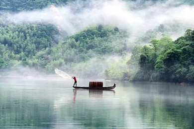 东江湖最著名的就是云雾,每天早上起来,前往观雾栈,会有渔夫表演撒网。旭日东升,迷雾缥缈,仿佛进入了仙境。