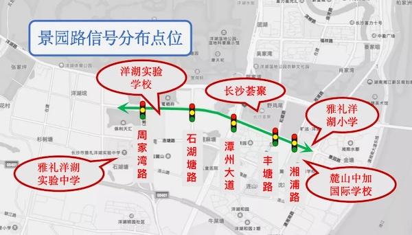 在智能交通项目建设大力升级信号机前提下,长沙交警已在全市90余处路段实施了“绿波”协调控制方案,有效提高了道路通行效率,改善群众出行体验。岳麓区景园路是去年9月优化的:位于长沙市岳麓区洋湖大道以南的景园路,是岳麓区南部重要的交通次干道。区域内住宅较为密集,分布四个学校和一个大型商超,交通需求较为旺盛,路段干扰较为严重,在车流量不大的情况下区域内车辆停车次数较多,行车体验不佳。